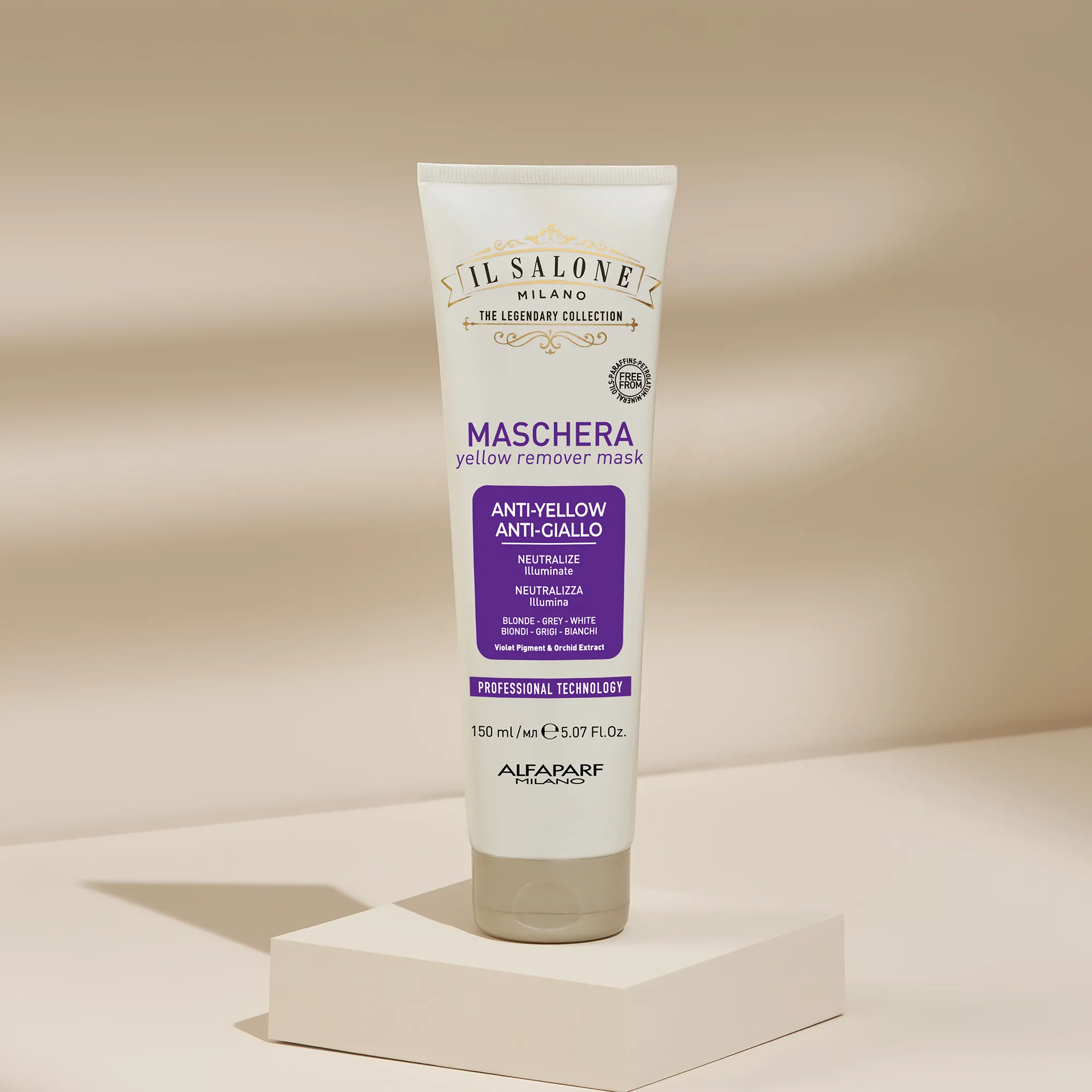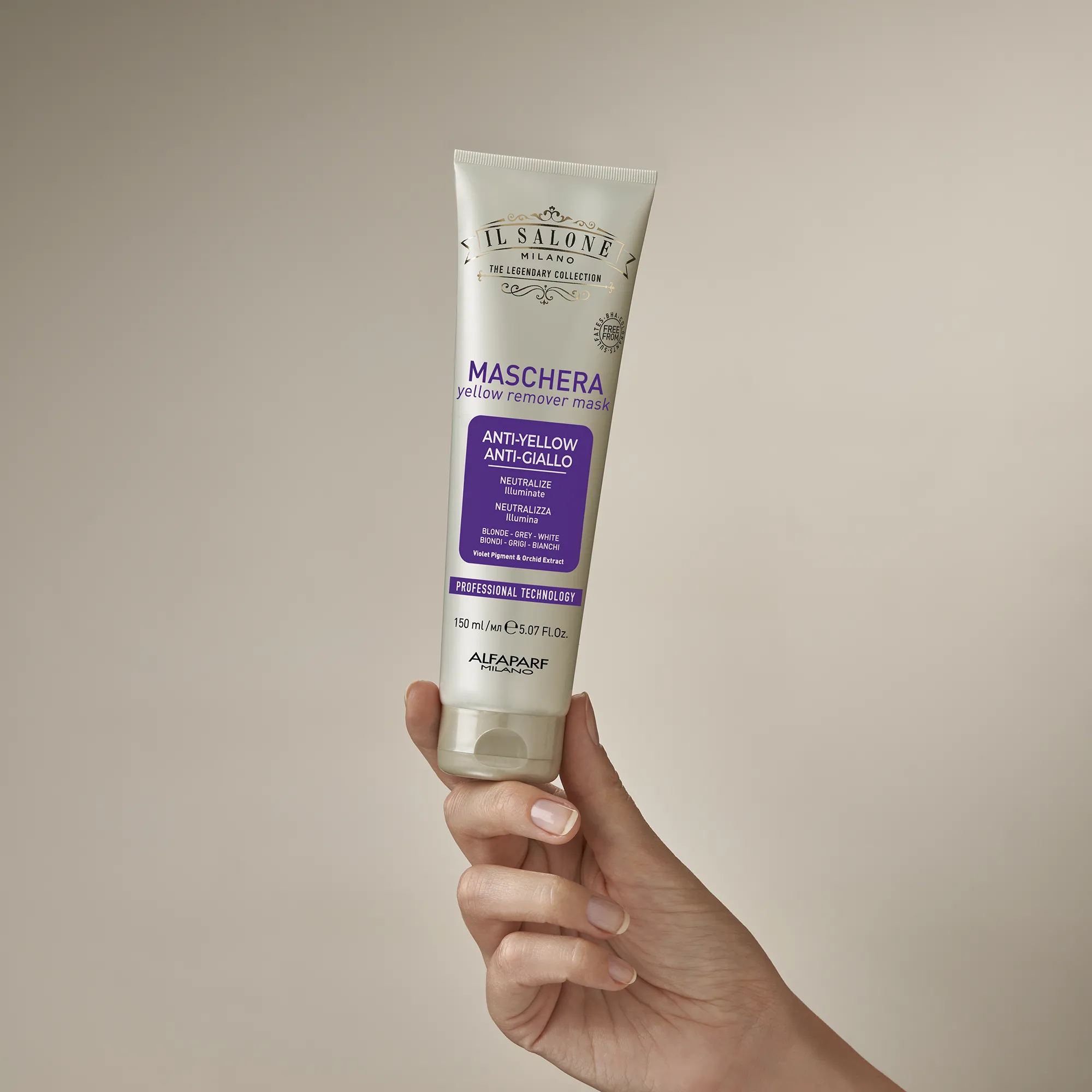 La línea profesional antiamarillo Yellow Remover neutraliza instantáneamente los tonos amarillos y realza el brillo natural del cabello. Tratamiento super caring para nutrir el cabello en profundidad, dejándolo suave y con un aspecto visiblemente sano.