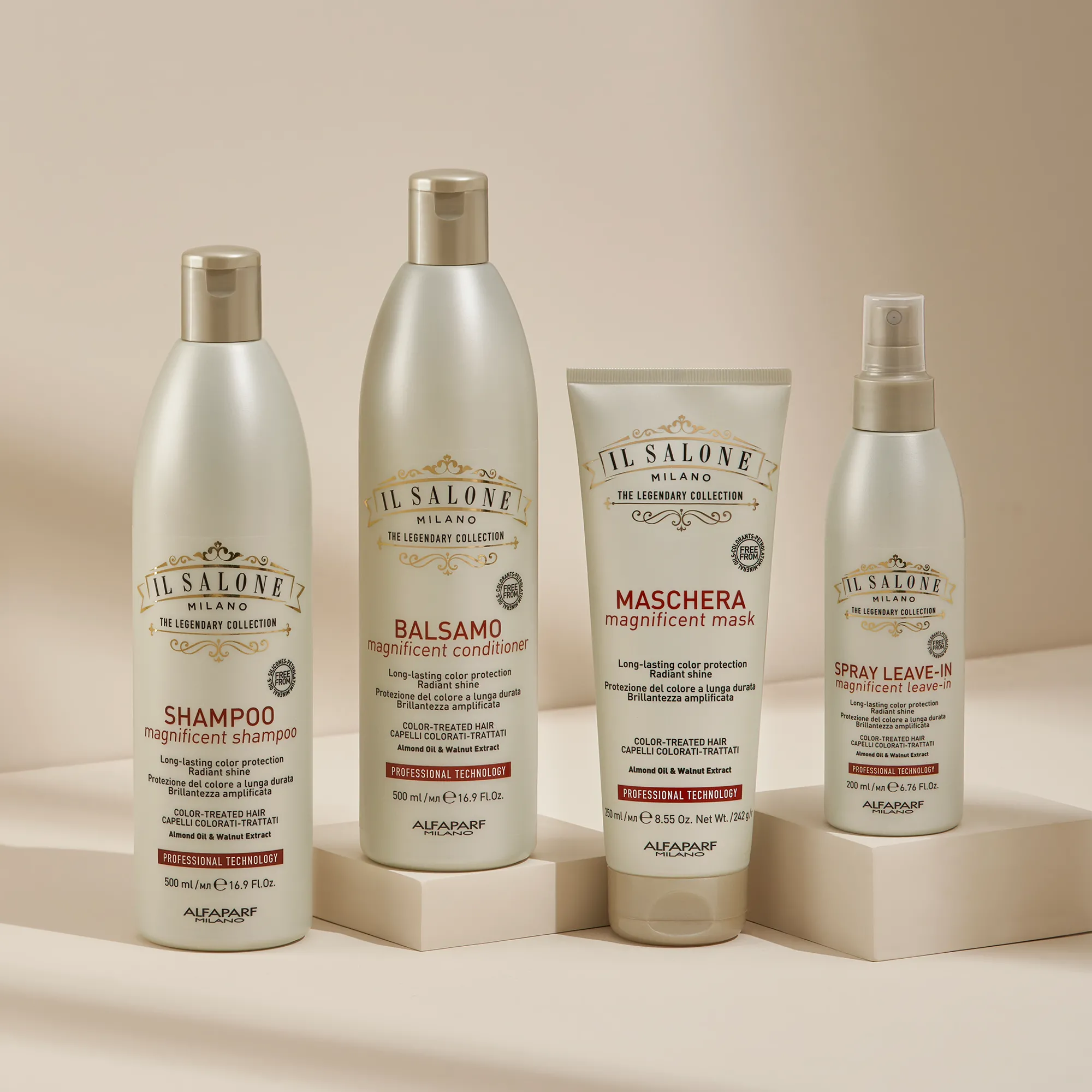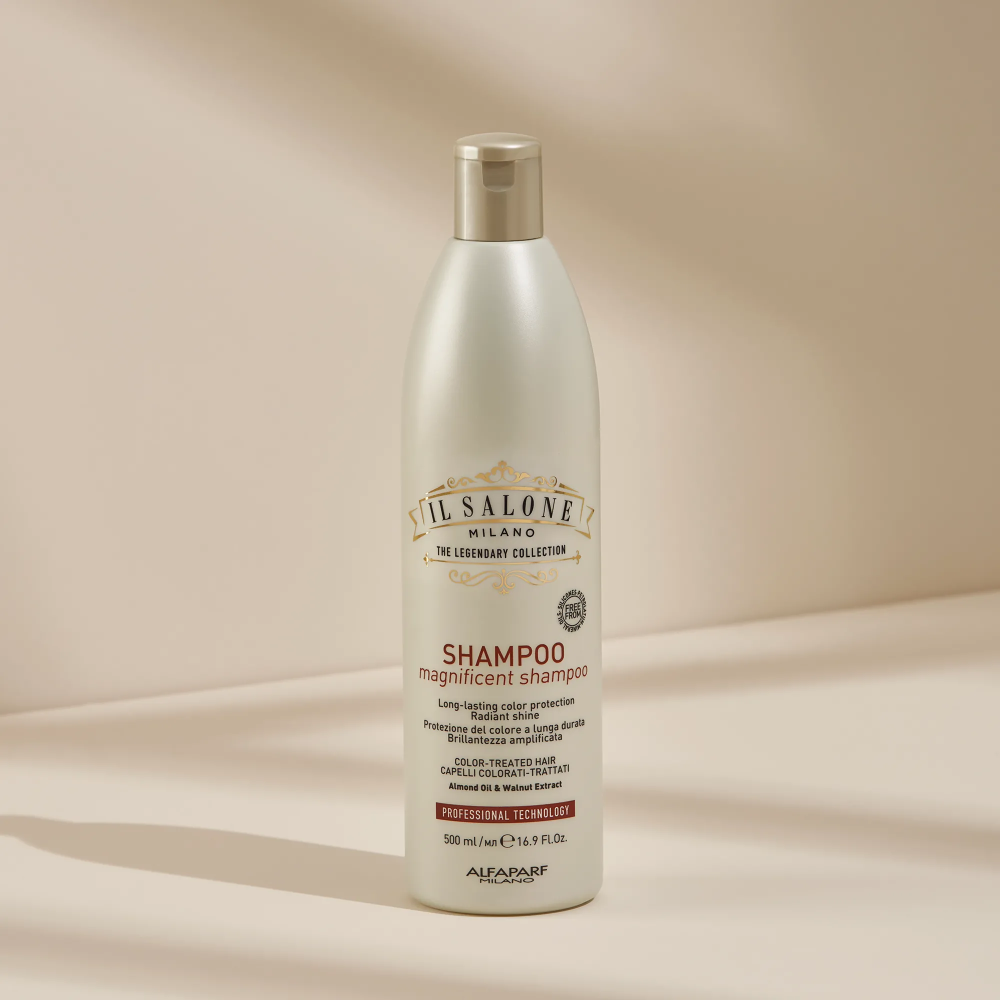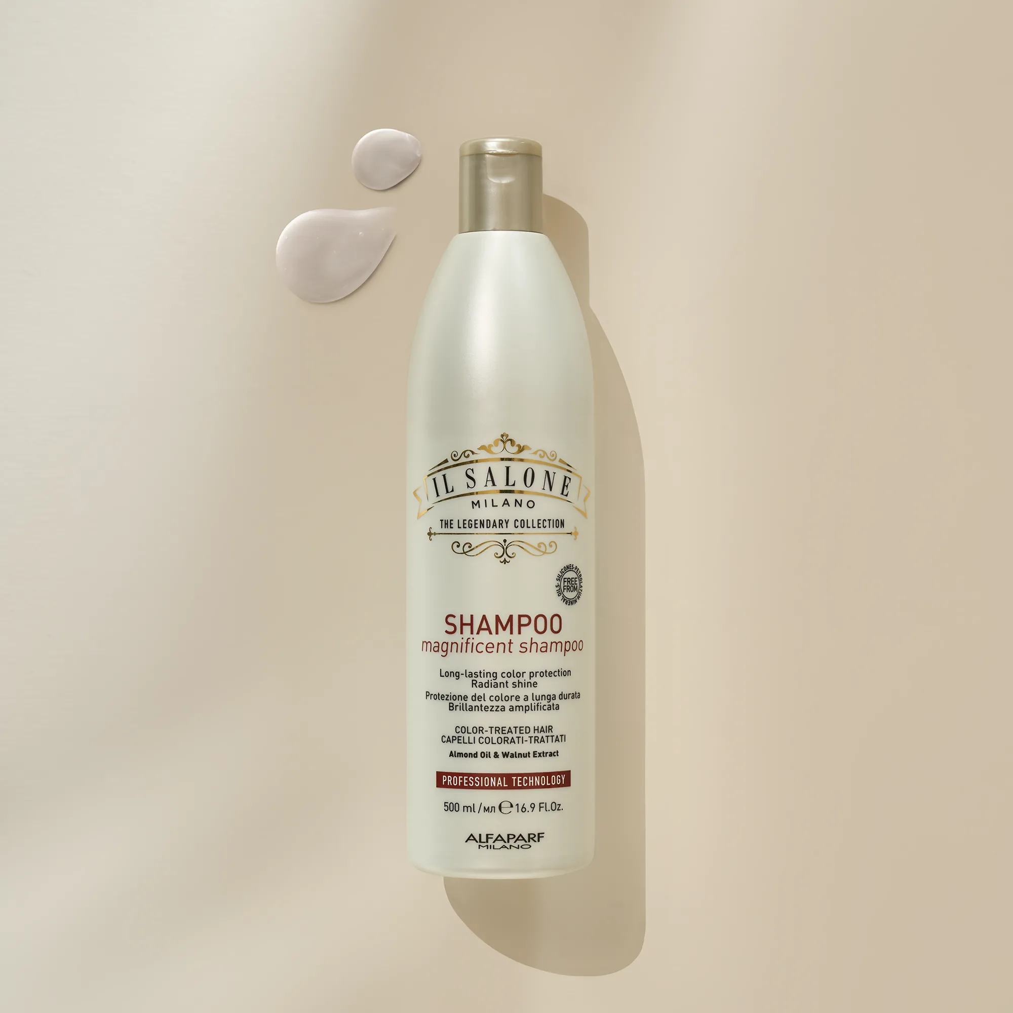 Discover the Magnificent product line: almond oil and walnut extract care for coloured hair and deliver extreme intensity. Vegan formulas free from paraffins, petrolatum, mineral oils and colourants.