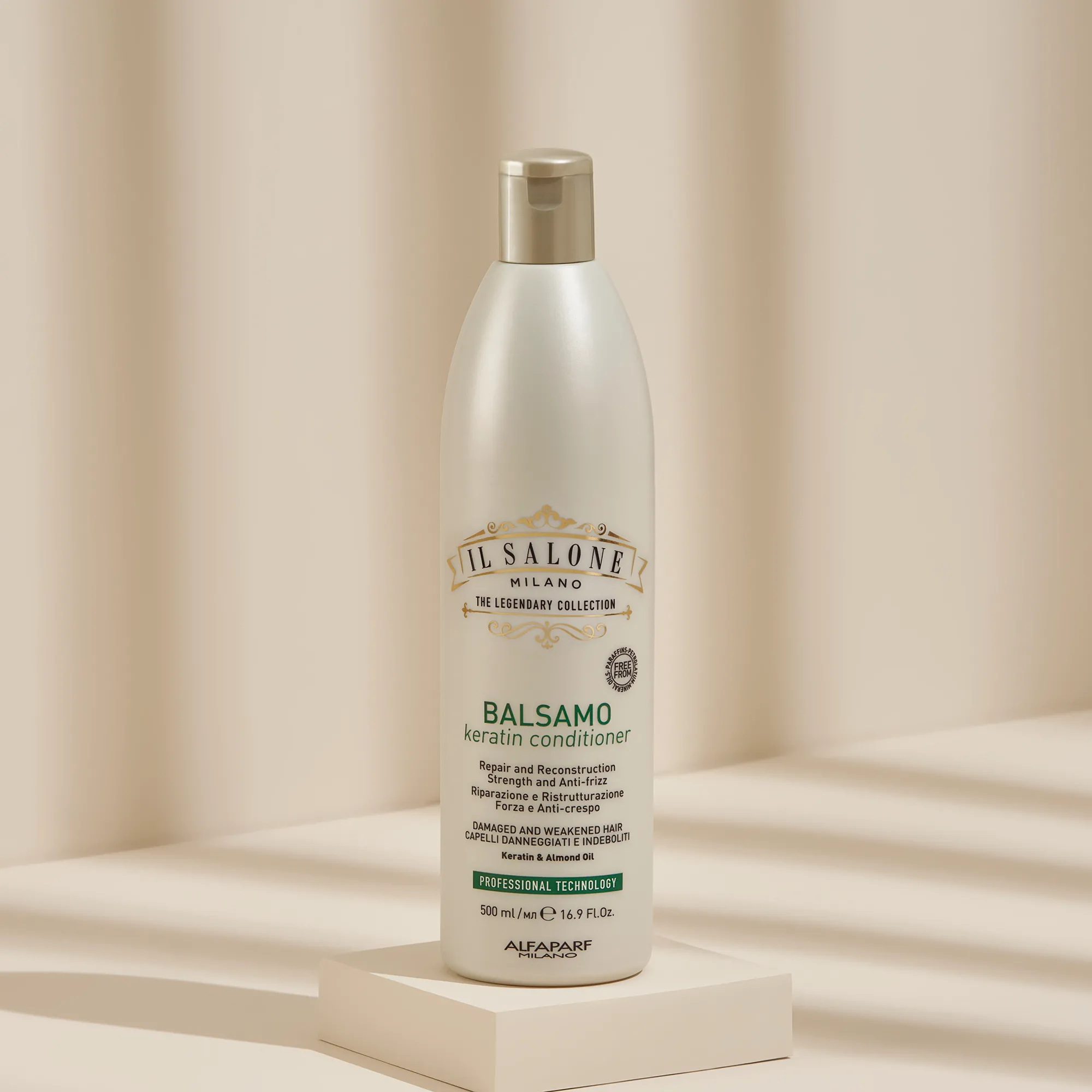 Acondicionador profesional para cabellos dañados y debilitados. Desenreda al instante sin dejar residuos, ayudando a reparar la fibra capilar y evitando que se debilite. Cabello fuerte y regenerado. Utilizado por los peluqueros.