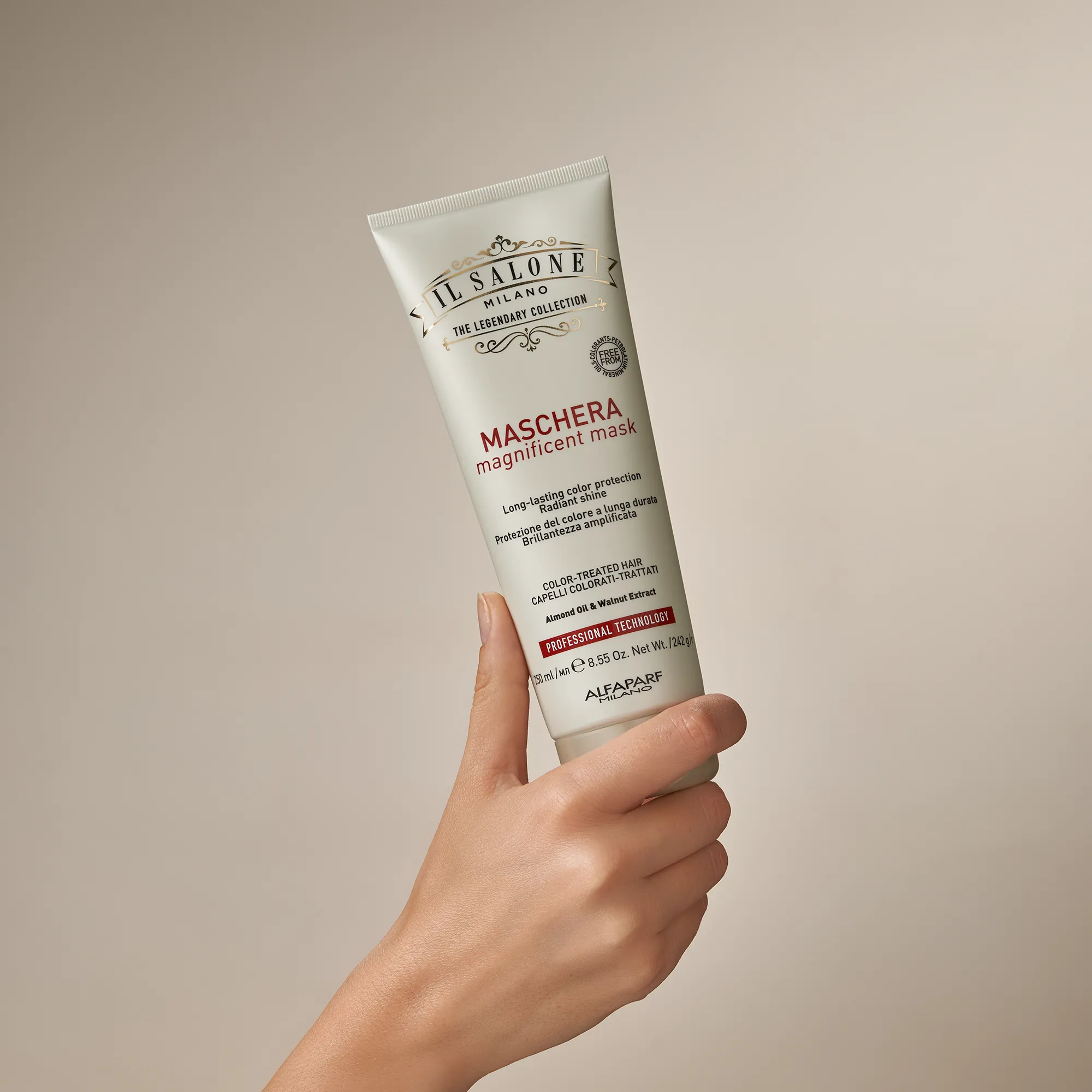 Maschera professionale per capelli colorati e trattati.