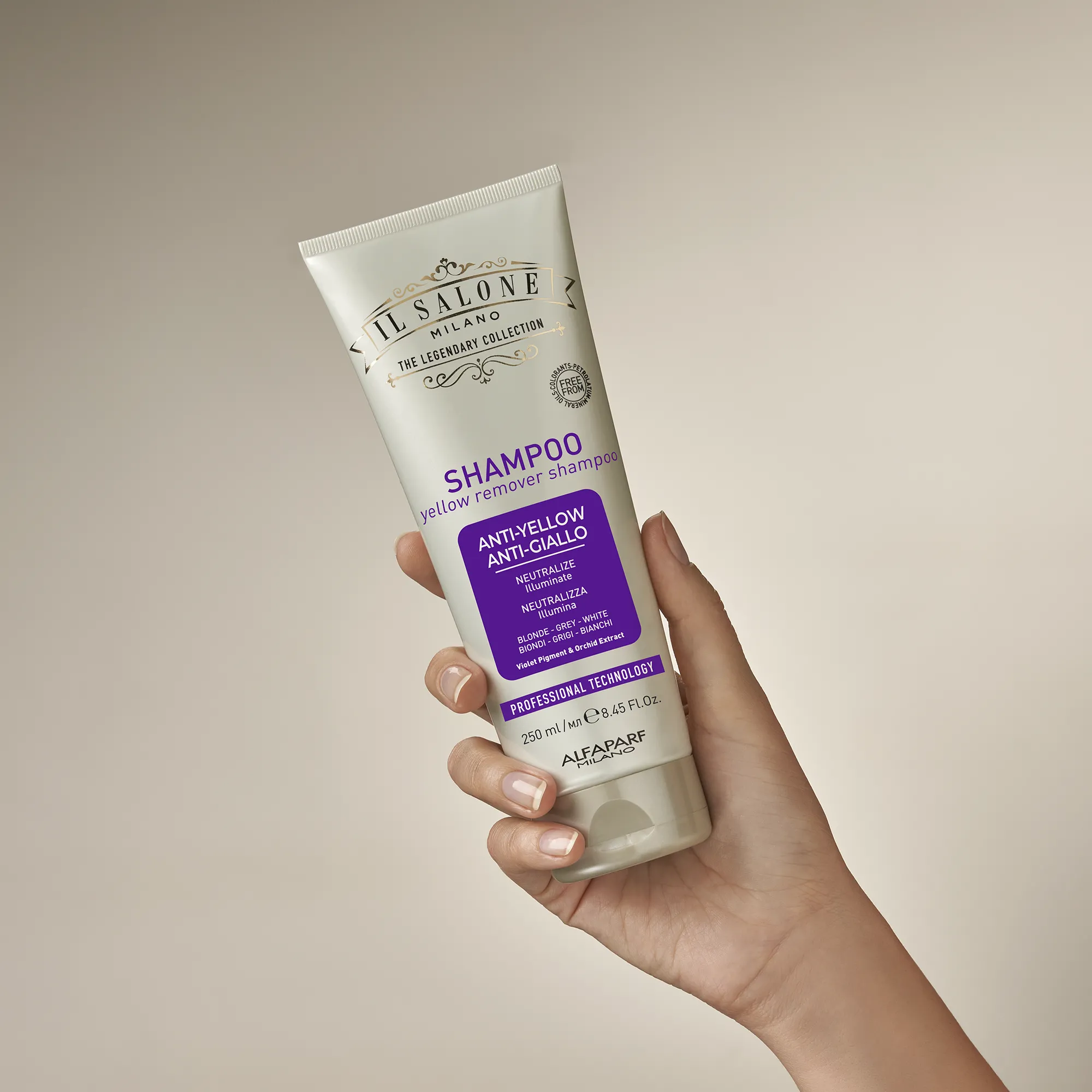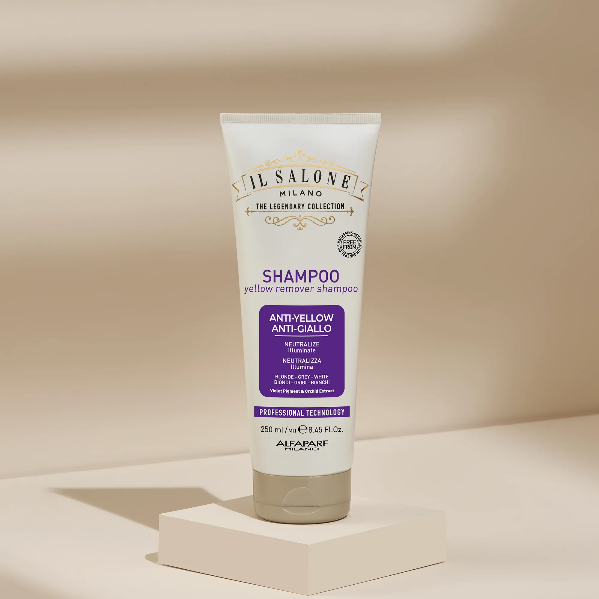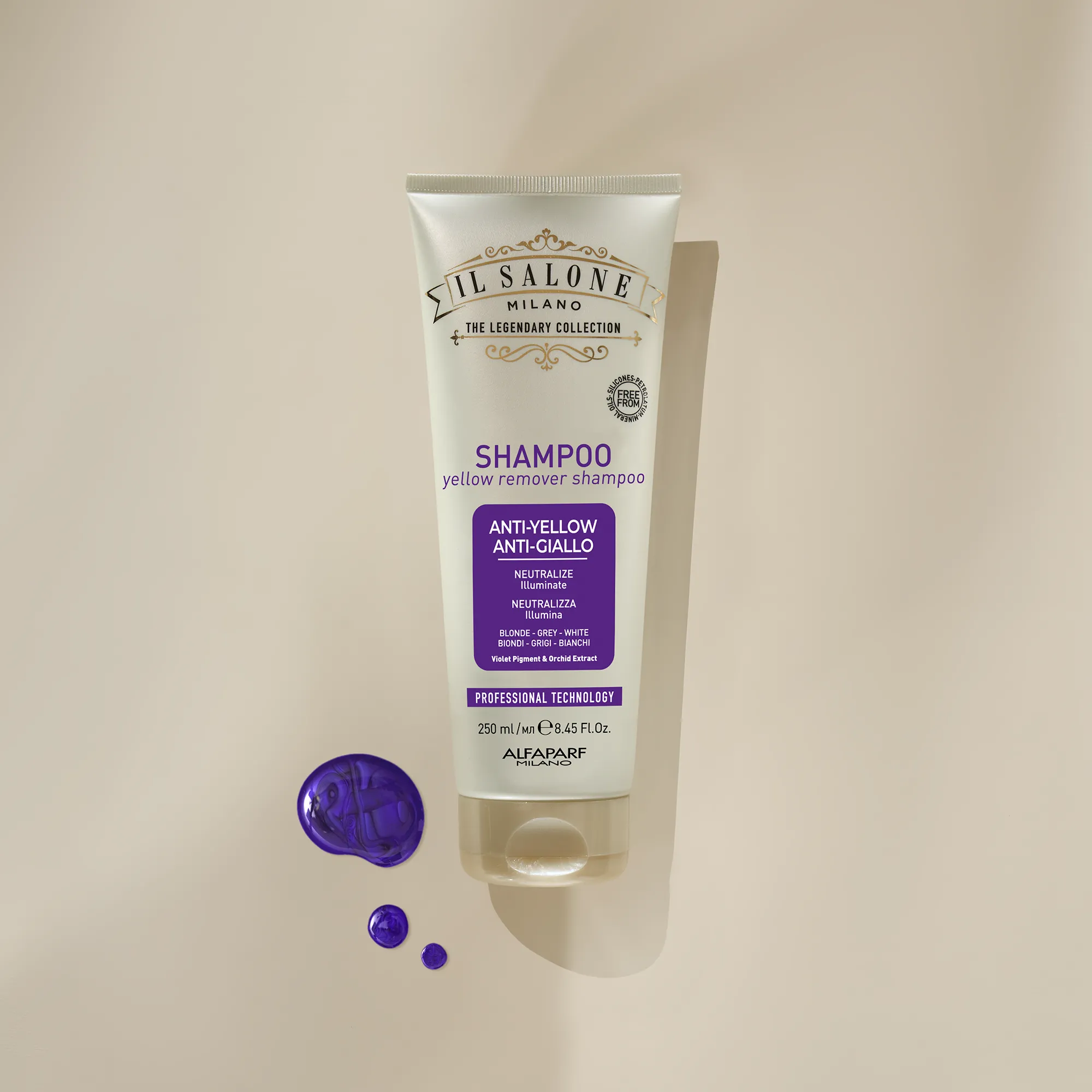 A linha profissional anti-amarelo Yellow Remover neutraliza instantaneamente os tons amarelos e realça o brilho natural do cabelo. Tratamento super cuidadoso para nutrir em profundidade os cabelos, deixando-os macios e com um aspeto visivelmente saudável.