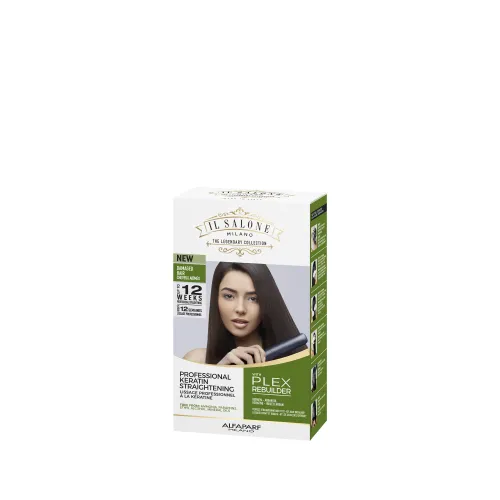 Tratamento de alisamento profissional com queratina do Il Salone Milano para cabelos danificados.